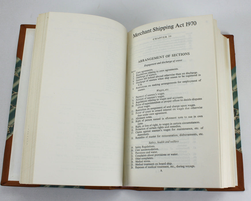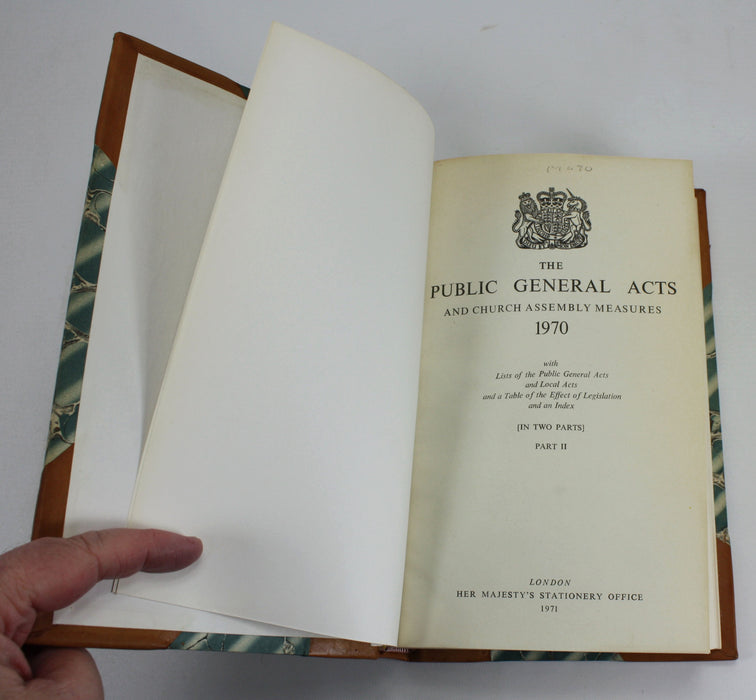 Large Collection of 46 Leather bound Acts of Parliament. Ranging from 1952-1979, these 46 Volumes feature The Public General Acts and General Assembly Measures, with Lists of the Public General Acts and Local Acts and a Table of the Effect of Legislation and an Index. This is a typical full title, but will vary along these lines from book to book.