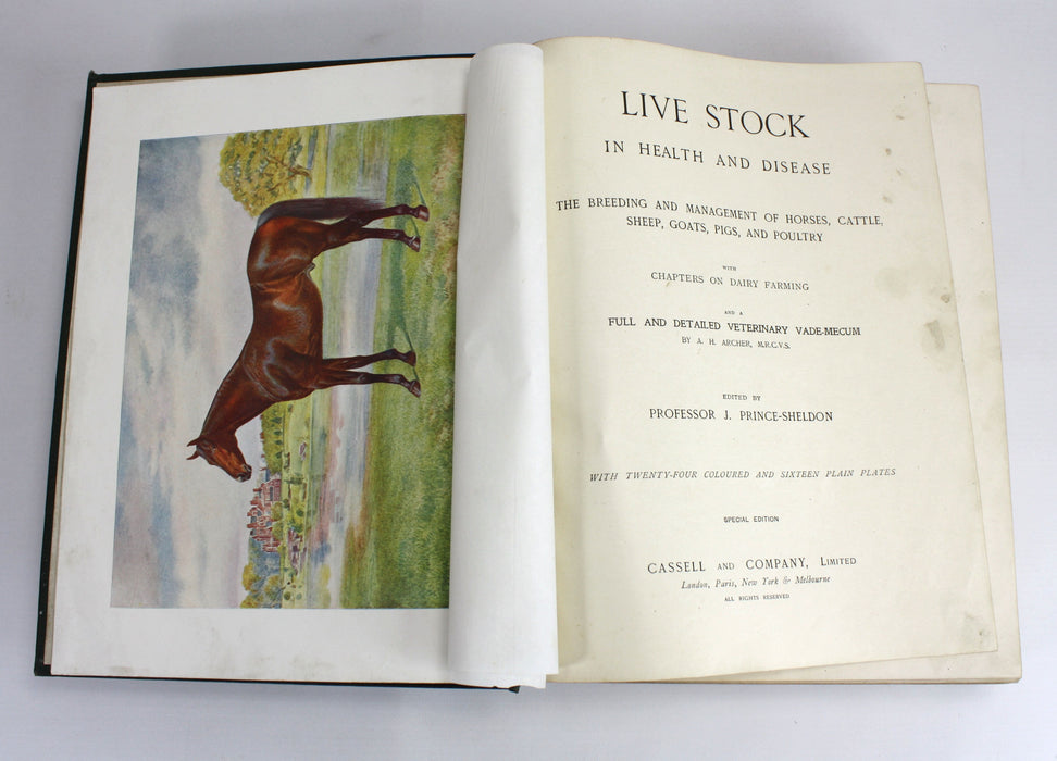 Live Stock in Health and Disease; The Breeding and Management of Horses, Cattle, Sheep, Goats, Pigs, and Poultry, with chapters on Dairy Farming, and a full and detailed Veterinary Vade-Mecum by A. H. Archer, M.R.C.V.S. edited by Professor J. Prince-Sheldon, with twenty-four coloured and sixteen plain plates.