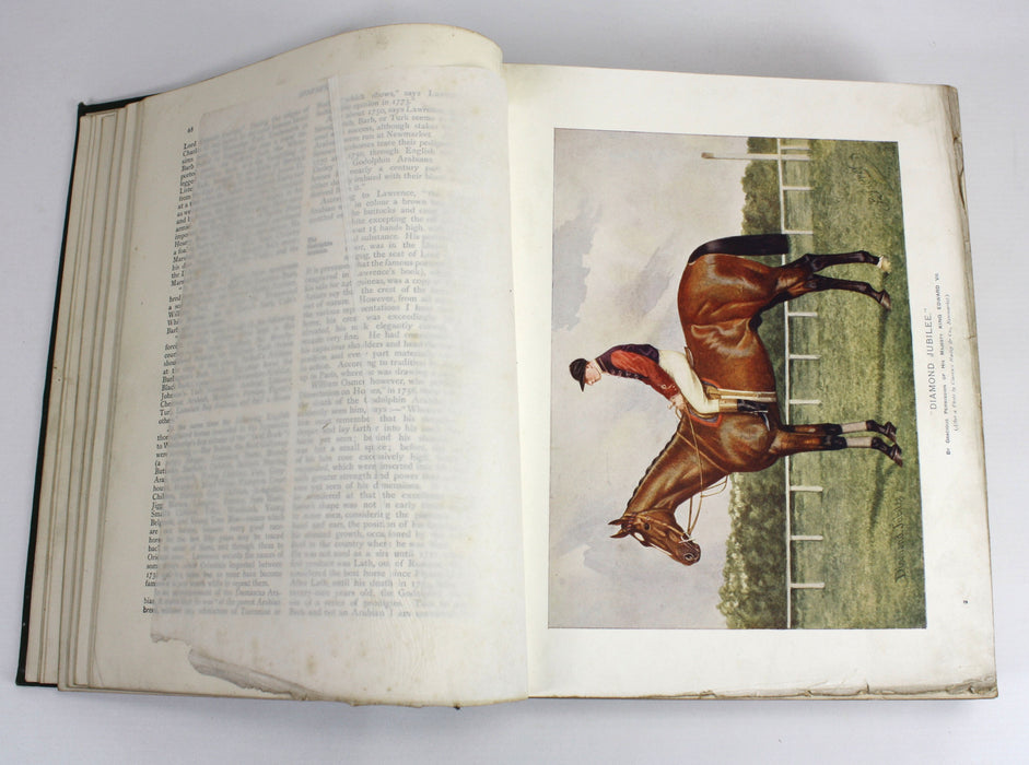 A good copy. Green hardback with gilt. Cover marked and rubbed. Foxing to endpapers. Worn gilt pages edges. Heavyweight contents slightly shaken in binding. Text is good throughout and colour plates retain brightness.