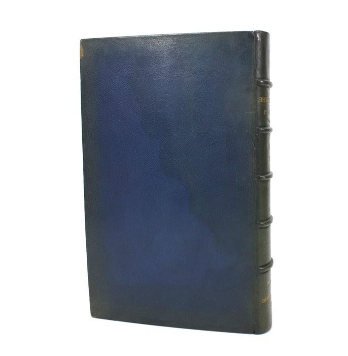 A very good full blue leather hardback with raised bands to spine, and gilt titles. Corners bumped, some shelf wear and discoloration to spine and rear cover which is stained. Inside, the endpapers use the same blue card as the pamphlet covers, with gilt dentelle inner edges, with some opposing offsetting. Blank free endpaper carries a label asking the book to be returned to Mr. Alexander Belch, The Shipbuilding Conference.