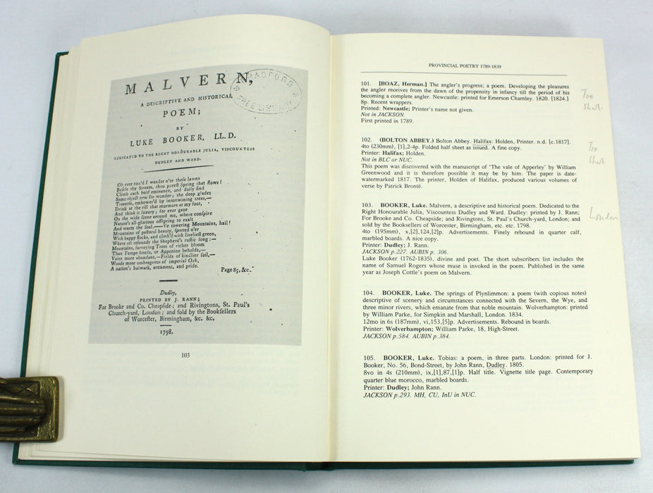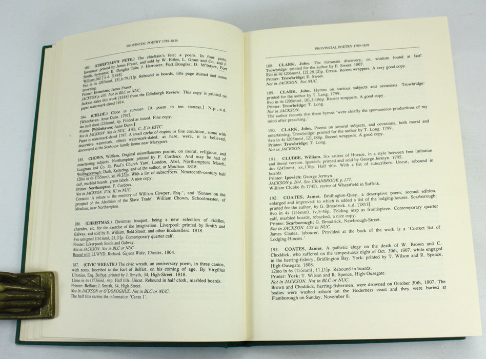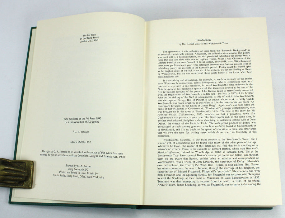 Provincial Poetry 1789-1839; British Verse Printed in the Provinces: The Romantic Background. By C.R. Johnson. With an introduction by Dr. Robert Woof.