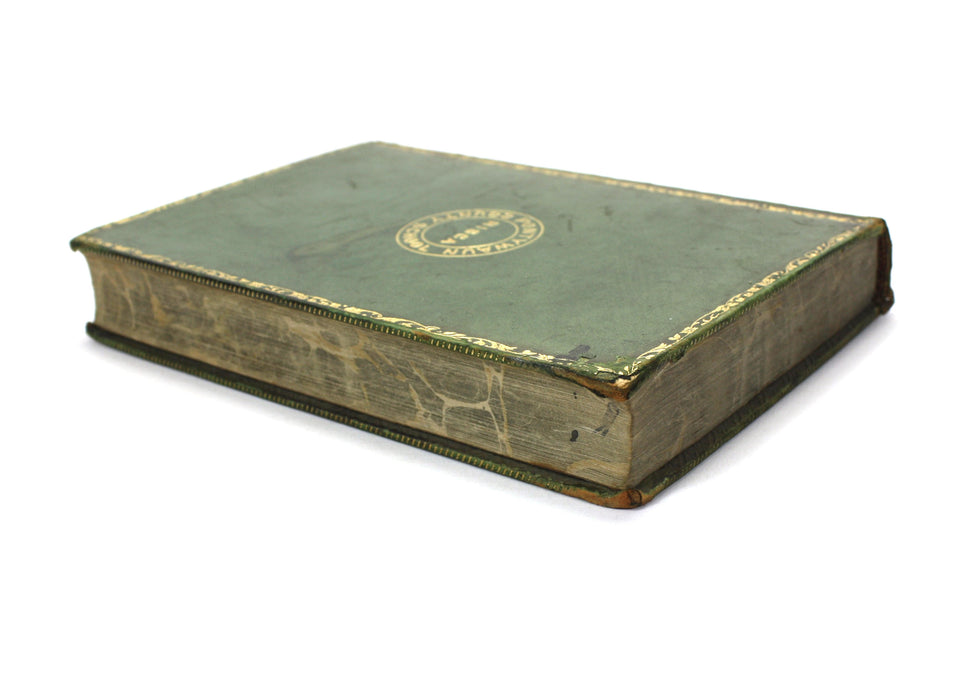 A good hardback bound in dark green leather with gilt decoration. Front cover carries the gilt roundel of Pontywaun County School, Risca, in South-east Wales. Covers bumped,  scuffed and worn to extremities. Previous owner's name to first free blank endpaper. Marbled endpapers and marbled edges to text block.