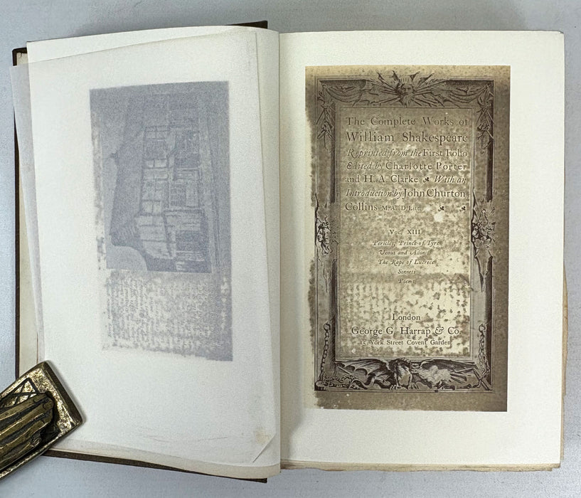 The Complete Works of Shakespeare, Reprinted from the First Folio. Edited by Charlotte Porter and H.A. Clarke, with an Introduction by John Churton Collins. In Thirteen Volumes, complete.