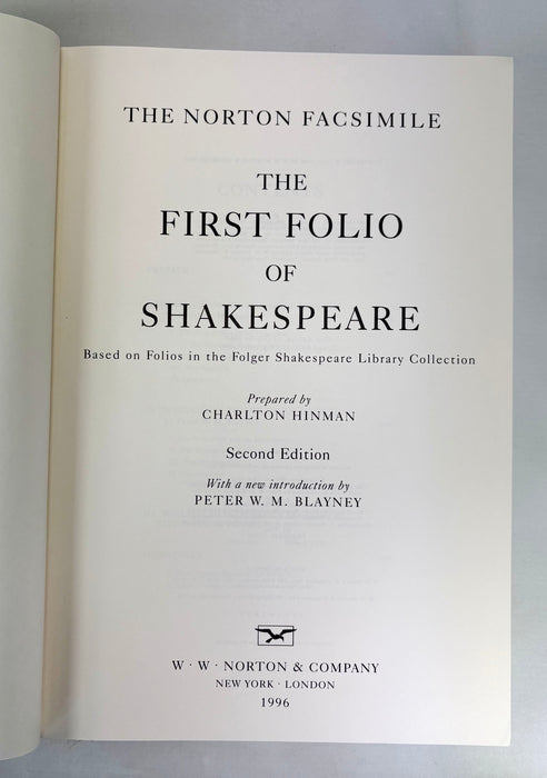 The Norton Facsimile; The First Folio of Shakespeare. Based on Folios in the Folger Shakespeare Library Collection. Prepared by Charlton Hinman. With a new introduction by Peter W.M. Blayney.