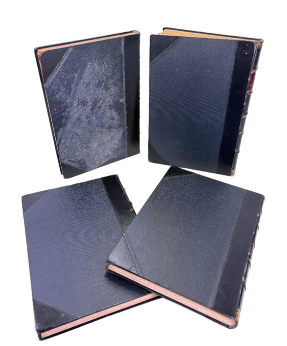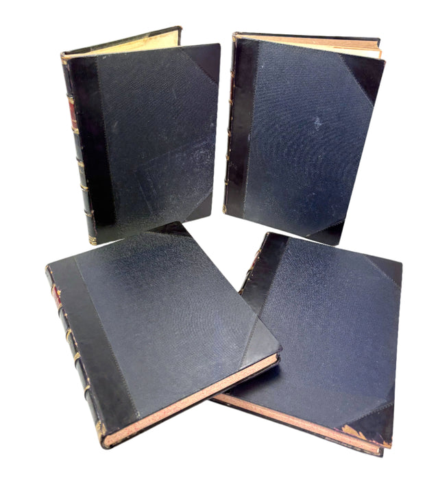 A very good set of 4 hardback volumes, each with black leather spine and corners, with raised bands, burgundy morocco labels, and gilt decoration and titles. With dark blue cloth over boards. Leather with some scuffing and bumping, and cloth with some light wear and scuffing generally, but Volume IV more has some significant discoloration and heavier wear. Still an attractive set. Some cracking to endpapers at gutter at inner hinges in places, but all volumes are soundly bound and secure.