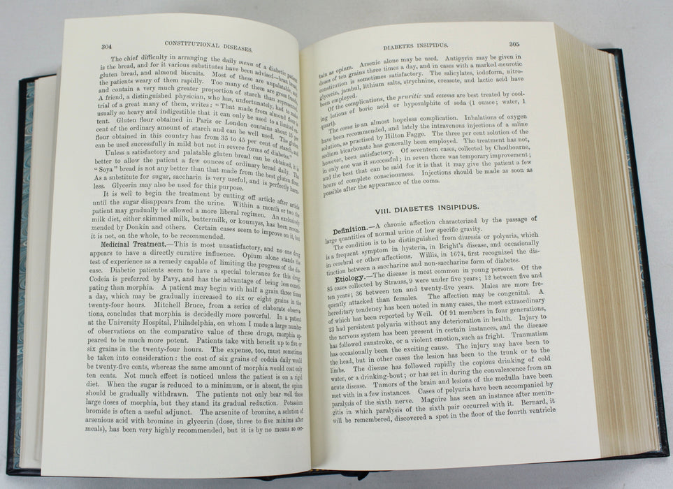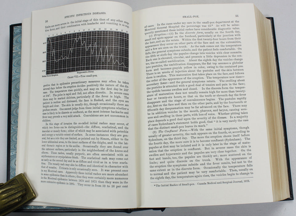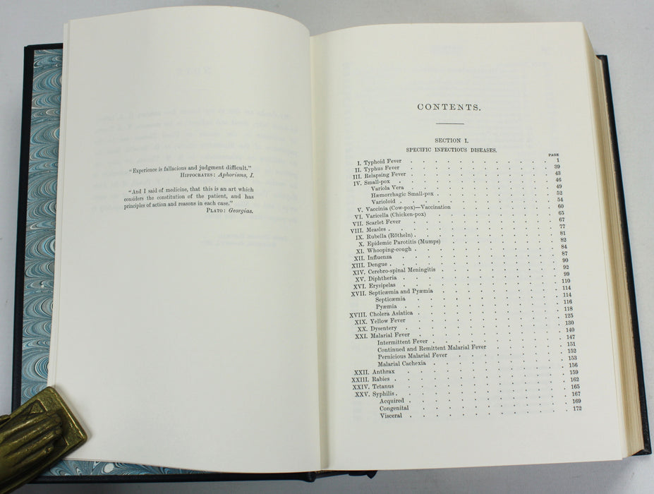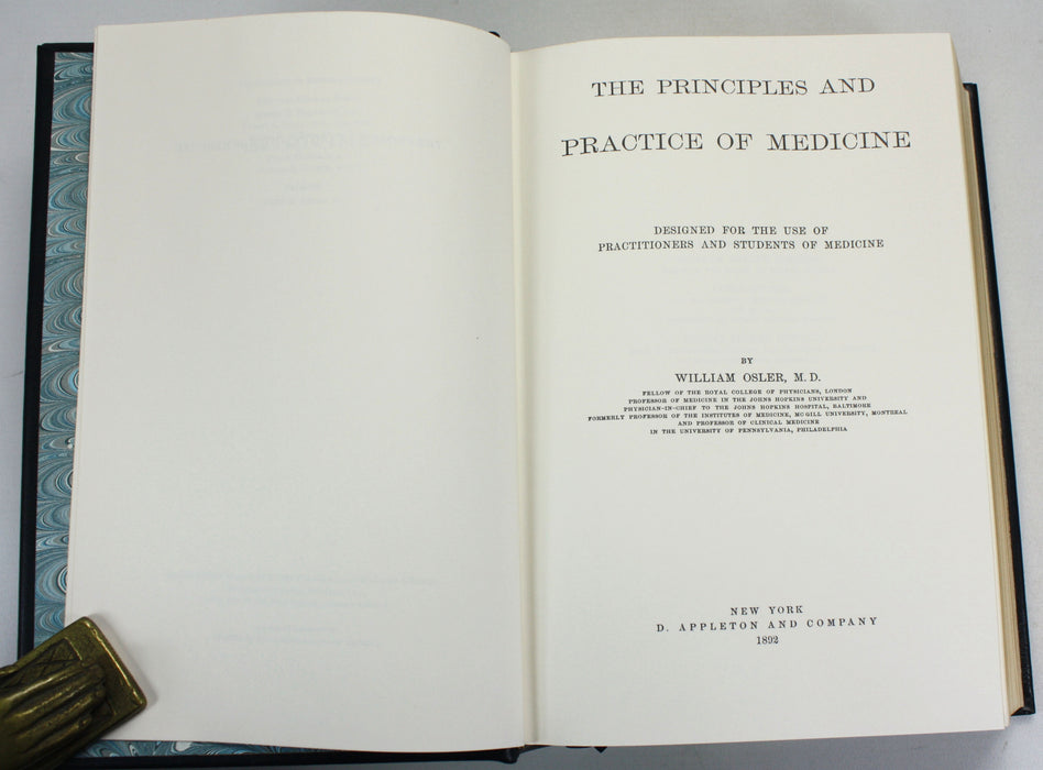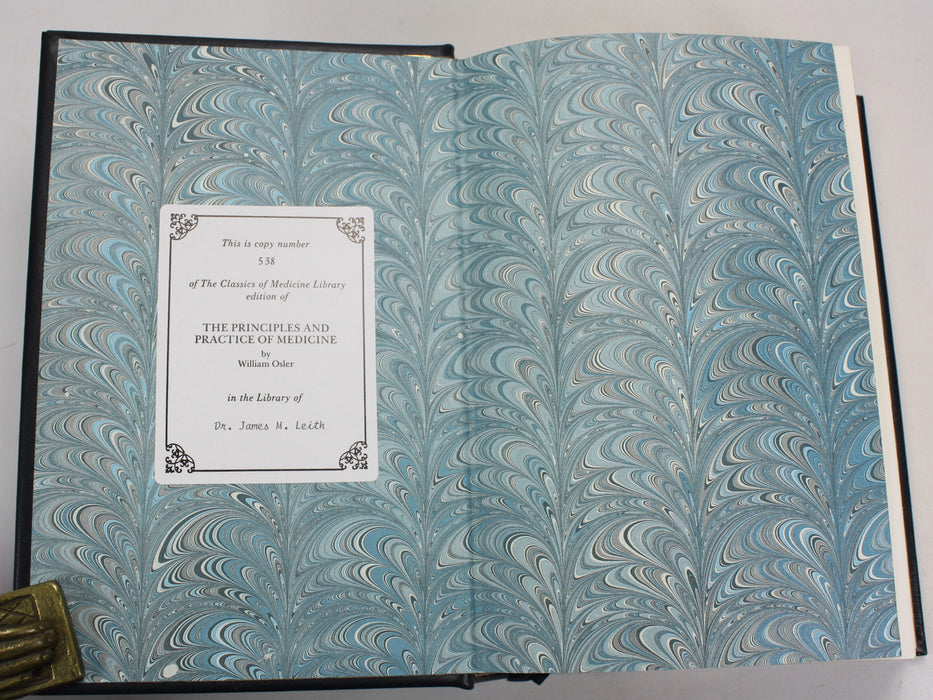 A beautifully presented volume of this work by William Osler, first published by D. Appleton and company, New York, in 1892. Very much a deluxe edition from the Classics of Medicine Library, in full top-grain cowhide leather, and 22-karat gold edges to the text block.