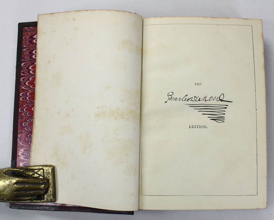 The Works of Charles Dickens; 'The Charles Dickens Edition'. Sometimes referred to as the Charles Dickens 'Signature Edition' due to his facsimile signature on the half title page. With Illustrations by Cruickshank, 'Phiz,' &c. Most volumes feature eight illustrations (all as called for). 14 Volumes.