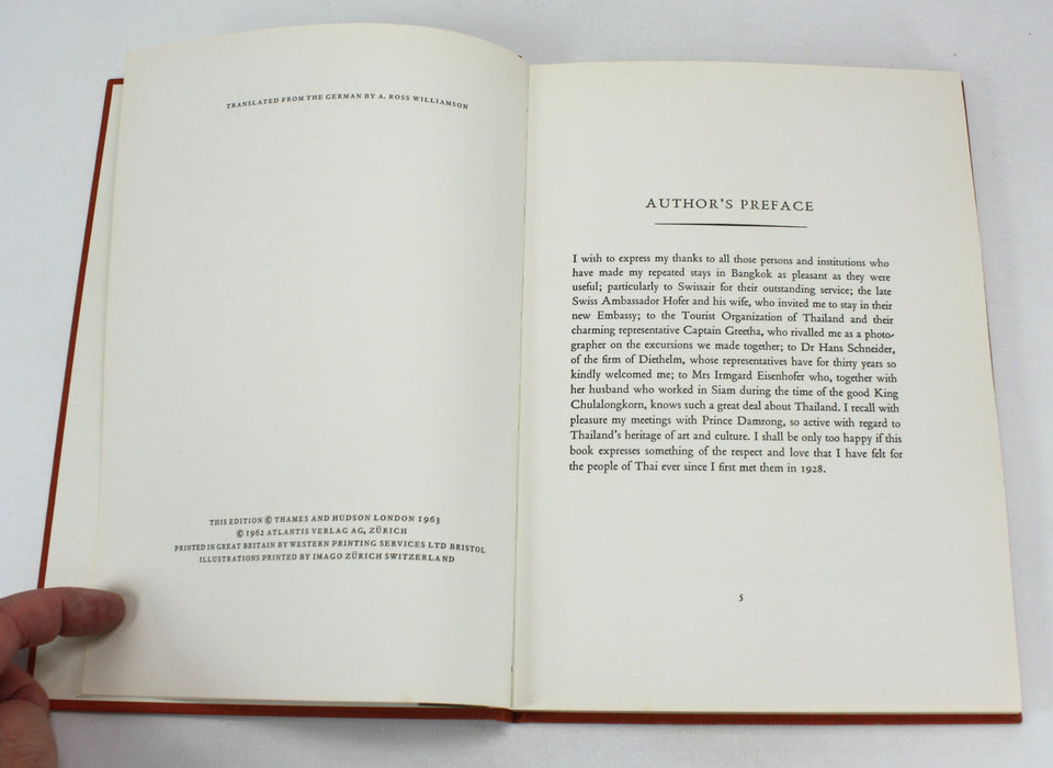 Published by Thames and Hudson, London, 1963. First English edition (published in German in 1962). A well produced pictorial guide to Bangkok from the 1960s.