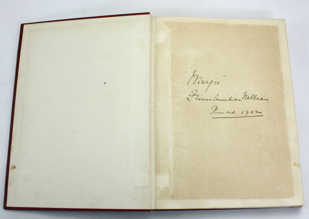Previous owner's inscription, dating to 1902, on first free endpaper. Mild offsetting to free endpapers. Text is bright and clean throughout, wiyth light spotting to edge of text block.